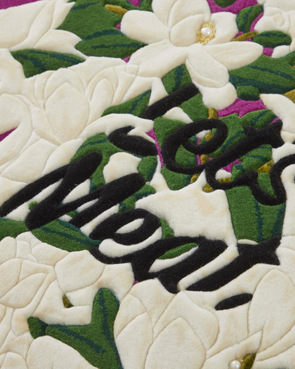 从泰迪熊的故乡罗腾堡旅行归来的艺术家叶子乐,创作了Kimmik可力乐熊系列。2020年疫情席卷全球,他重新审视人际阻隔、文化疏离的现实,“Let´s Meat”小熊挂毯以谐音文字游戏,隐喻渴求人际的“相遇”,反射出他的童话世界。
