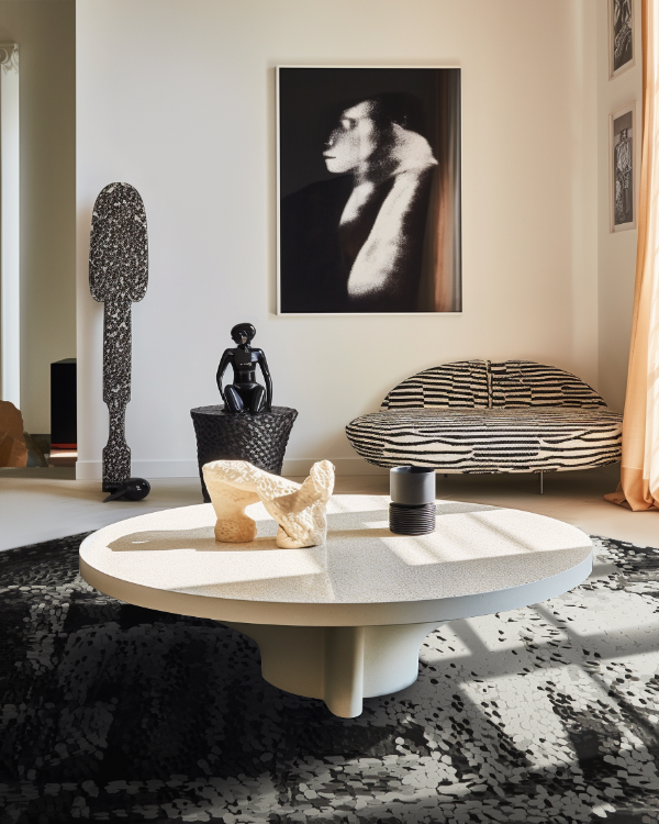 万物负阴而抱阳”画面各元素呈现相互依存、相互化生、相互作用,共处于一个统一体中,“道生一,一生二,二生三,三生万物”的哲学范畴,道是宇宙的本原,同时又是宇宙发展变化的动力和其发展变化所遵循的规律。