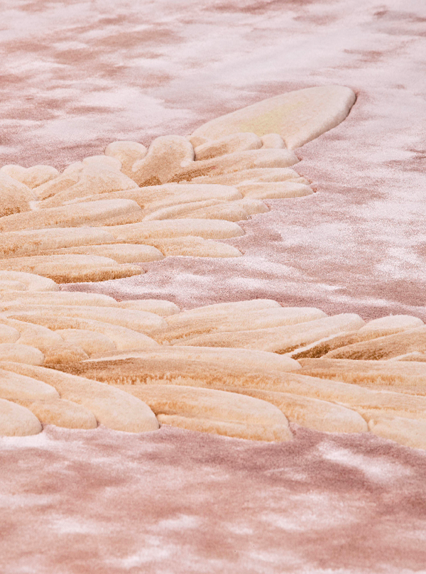 提炼海洋生物的形态,憨厚可掬,高低割绒雕花密布打法工艺与材料细腻交织出触角和身形,定格下海洋深处的奇景。