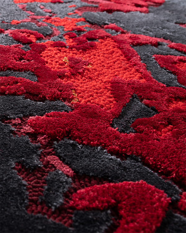 受雨后云彩的启发,就在太阳升起前。这款编织地毯选用软硬丝线、新西兰羊毛等材料,营造出古老东方水墨画般的层次感。大胆欢快的鲜红色地毯为所处的任何房间带来新的生机。