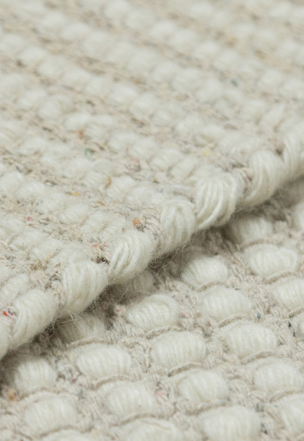 印度手工双层底背编织,原始色羊毛捻纱,自然颗粒感,奶油风、极简风、意式风、侘寂风,随心搭配。同色纯手工缝制线边, 视觉一体自然美观。底背不使用胶水,天然、环保、地暖使用不散发气味。地毯柔软可折叠收纳不变形,送礼佳选。水洗除浮毛技术加新西兰羊毛质量好、纤维长的特质,掉毛率非常低,每个工人每天仅能缝制两条地毯,只为提供优异品质!