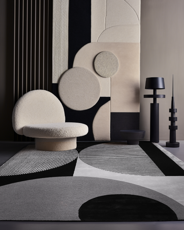 在自然界中圆形是一种常见的形态,象征着完整与美丽。感性的圆以及光影下的优美线条,黑白灰的光影透视感营造一种摩登时代的复古气息。
