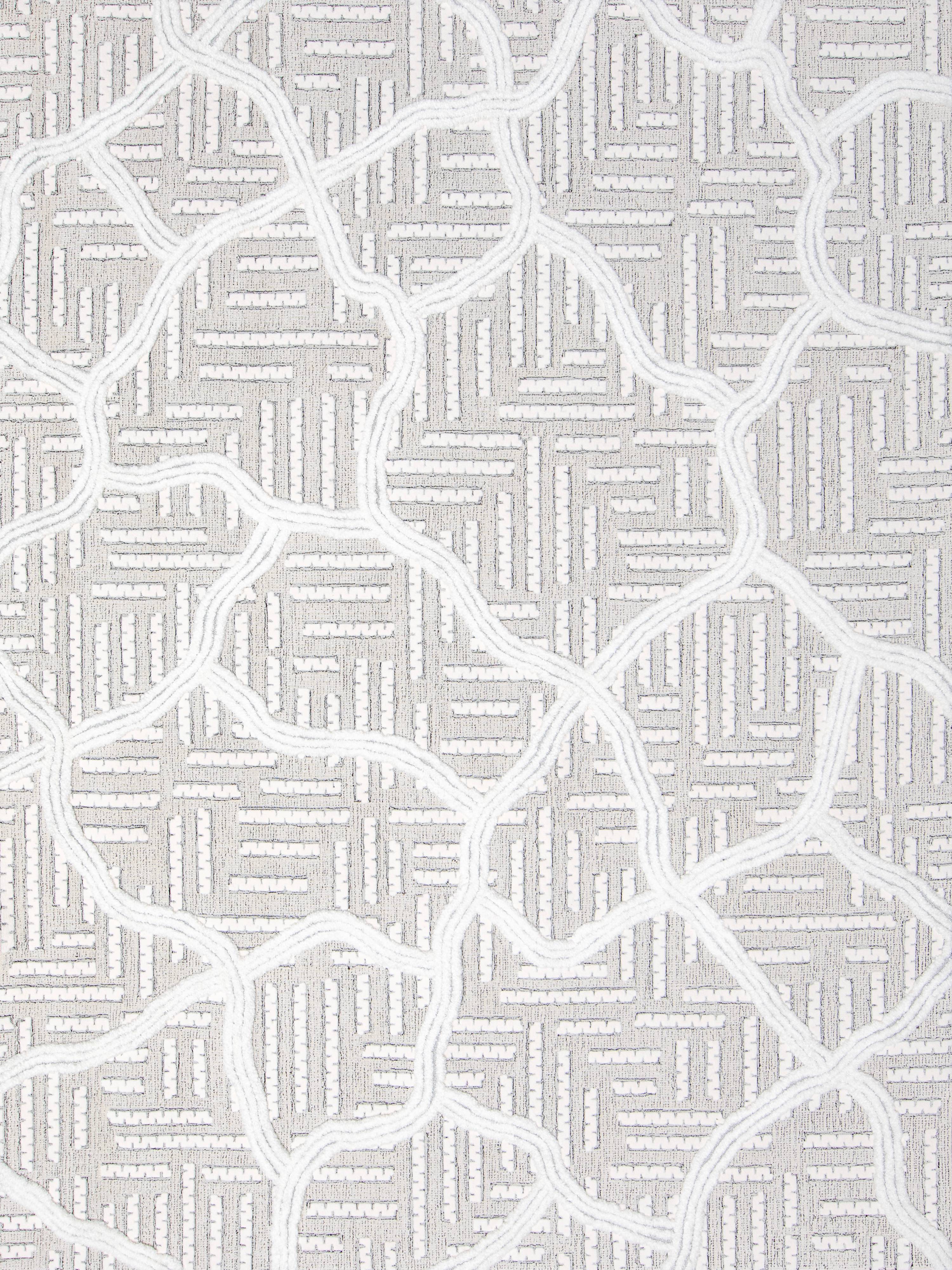 春风吹拂,冰雪融化,晶莹剔透的水流唤醒大地,为城市注入生机。图案底部采用简约的点线面表现城市村落,蜿蜒的线条代表河流穿梭,白色象征着洁白的雪域,最终呈现出生机勃勃的图案。