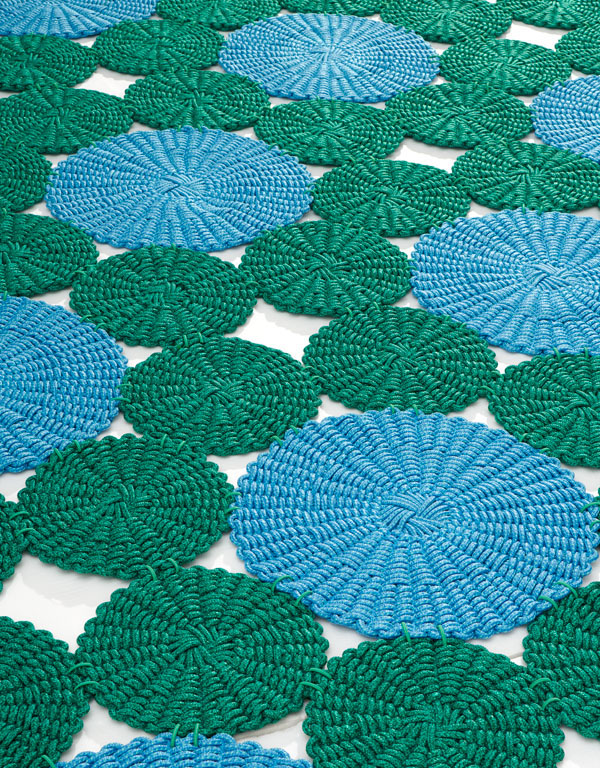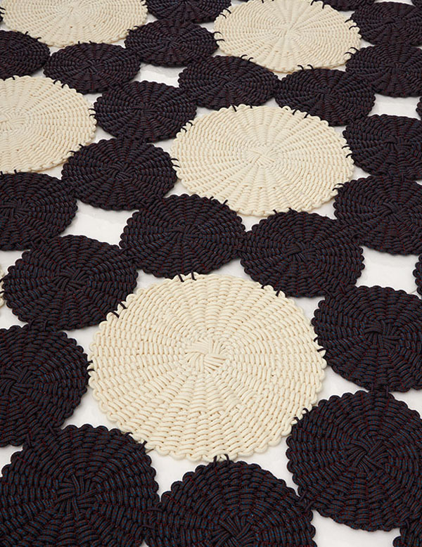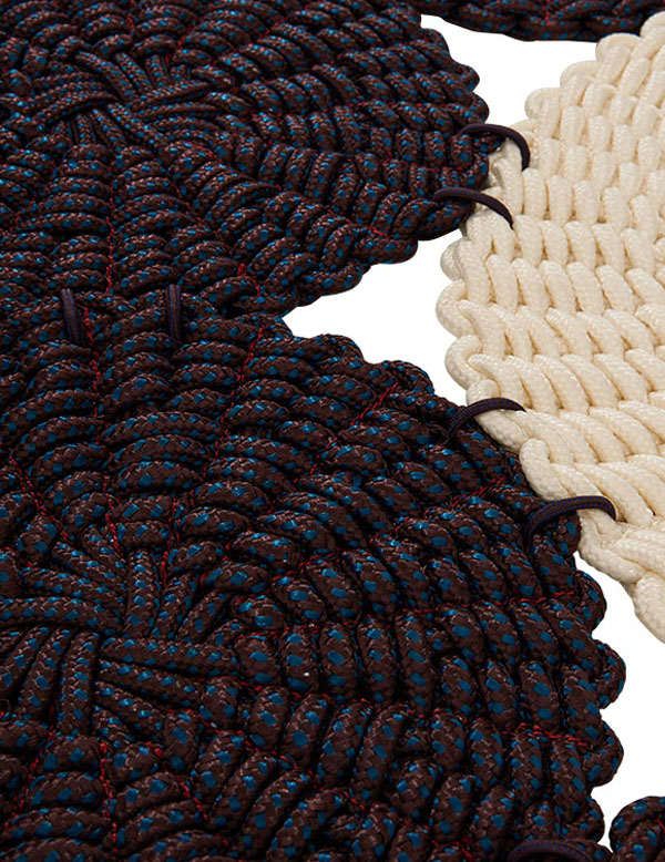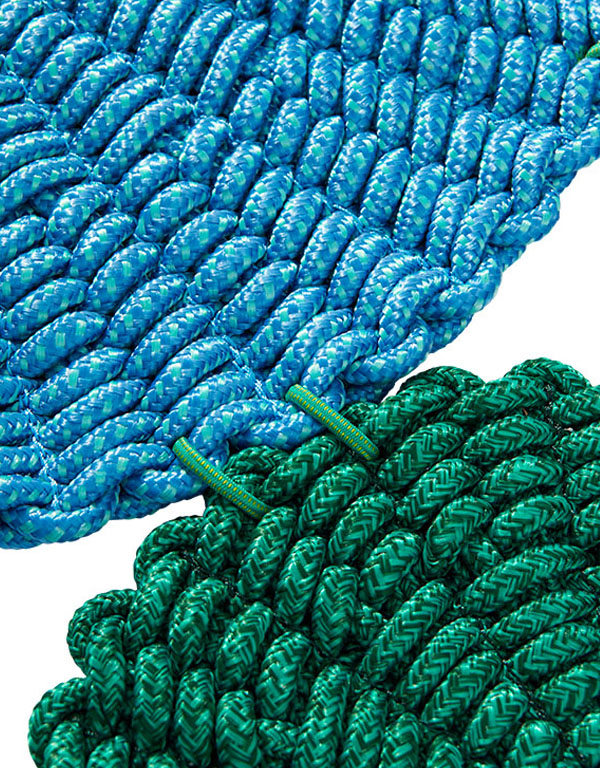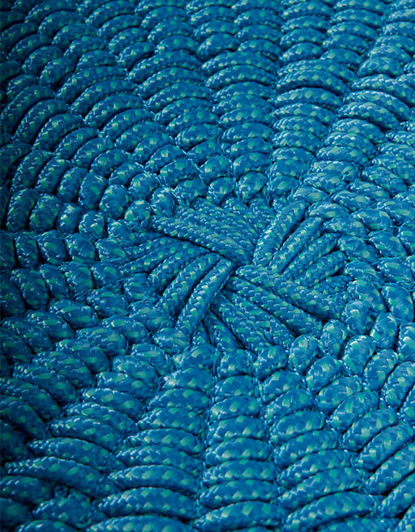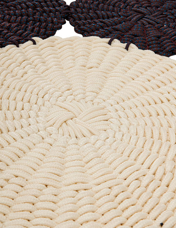 经由历史对绳索和编织结节的发展来看,绳结坚固耐用以及美好的寓意都很适合在地毯方向的探索和运用。FULI OUTDOOR户外地毯的绳结在编织的过程中每一个结节之间都会有缝隙以便于放置于户外的时候雨水可以很快的从每个紧密的缝隙间分散流出。