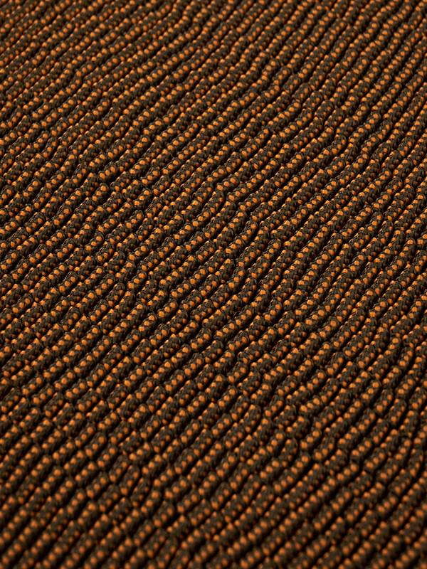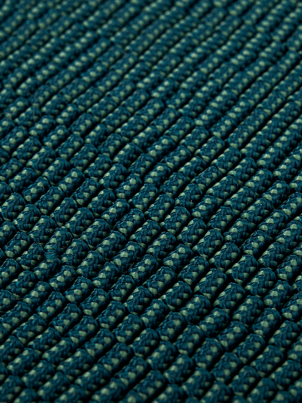FULIOUTDOOR通过对手工簇绒的设计方法进行延展,将簇绒的羊毛或是丝质等其它柔软细致的材料更换成可以放置于户外的丙纶创意型鞋带外形的材料,创造出完全不同于室内割绒地毯的触感和视觉。