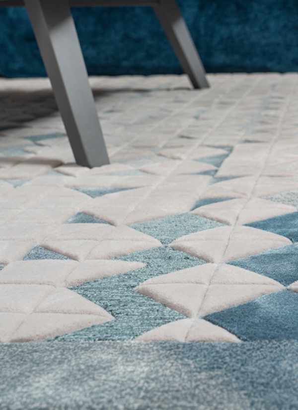 织毯以中性的色彩深浅不一地勾勒,手工枪刺工艺打造立体三维感,几何形块相互交叠,凝结着对生命的疑问。几何的通用性令其适宜不同的情境。