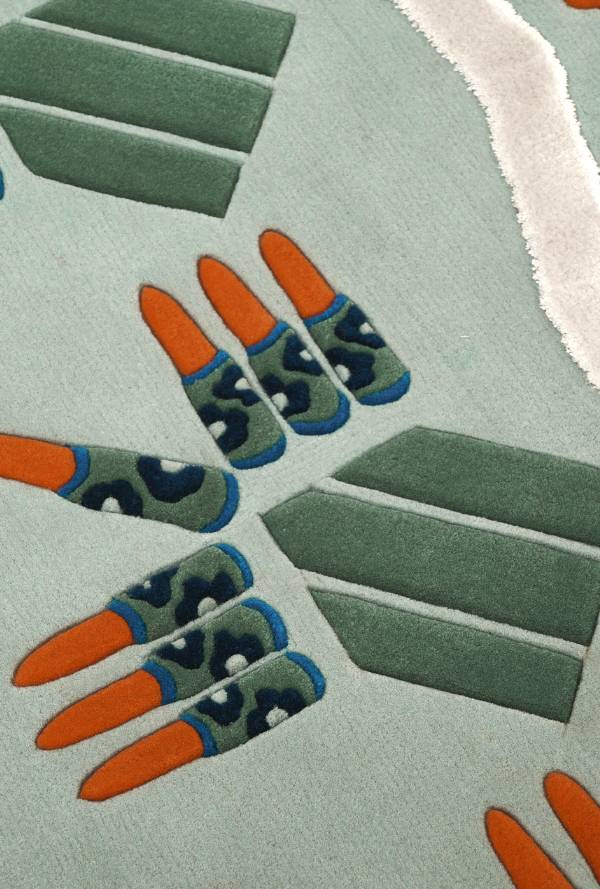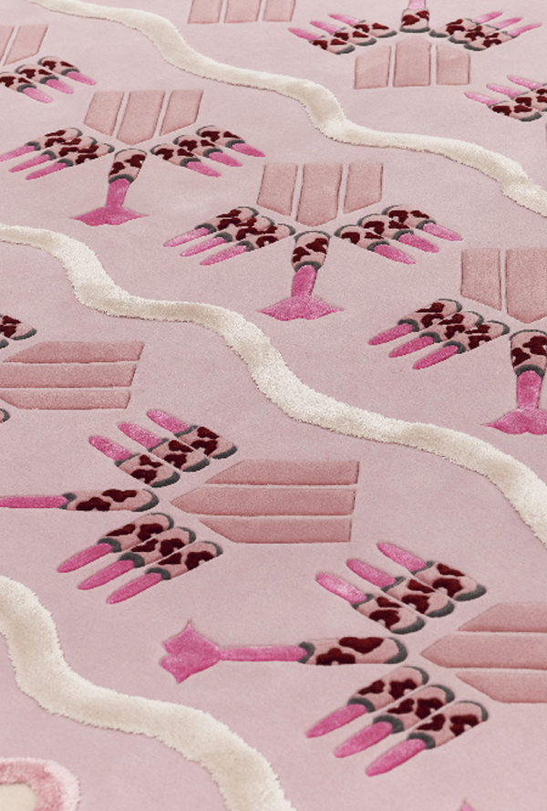 口红图案是桑德拉女爵的经典印花设计之一。她于1968年设计的同名绉纱面料,印满了嘴唇与口红的时尚图案。在与FUL的合作中,桑德拉女爵,重新回顾这款经典印花,并打破常规,用交错丰富的口红纹样组合,呈现出充满视觉冲击力与想象空间的图案,在地毯和挂毯中展现经典图形符号。