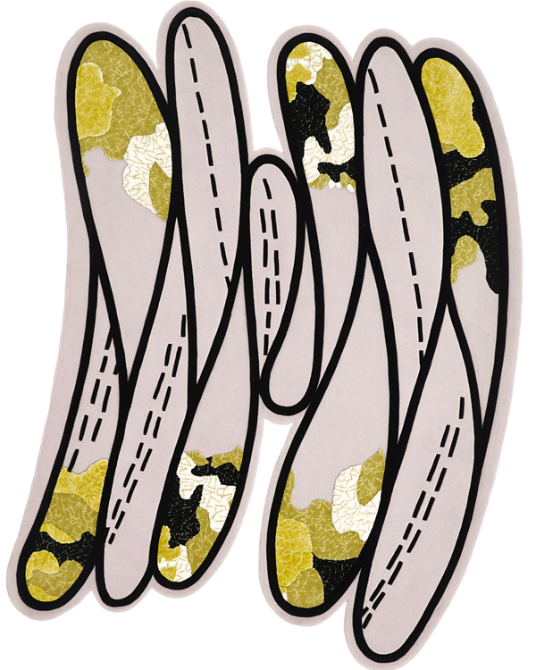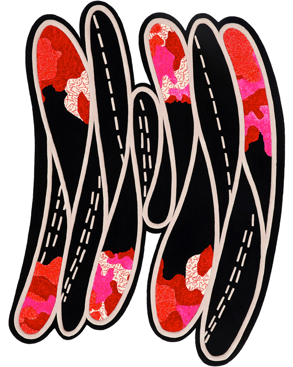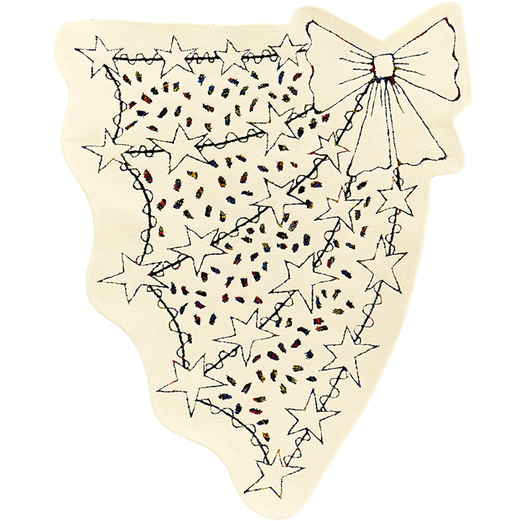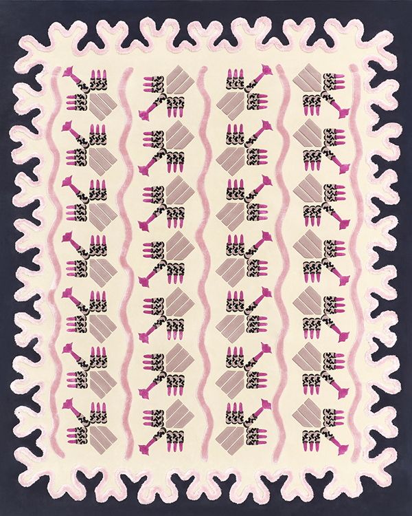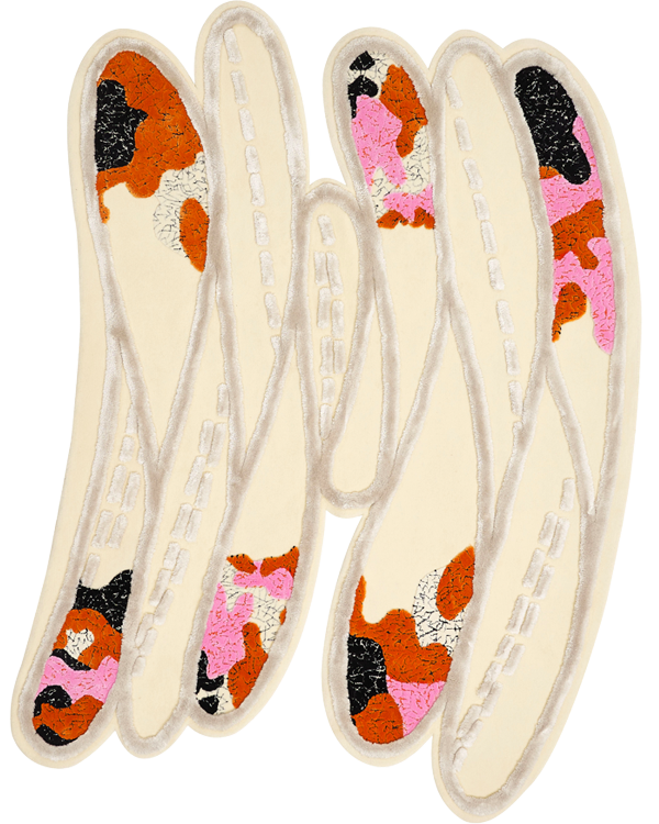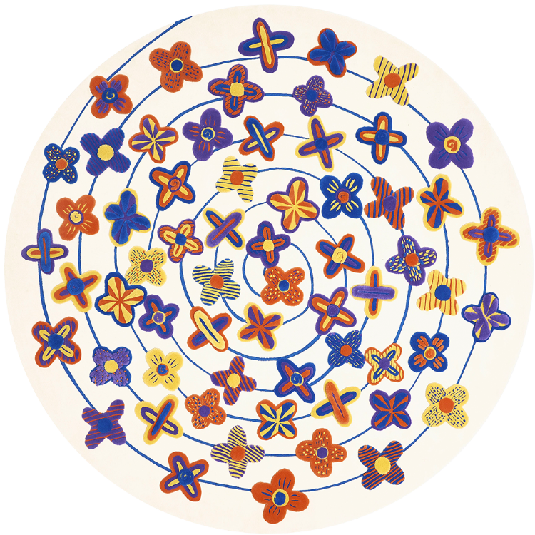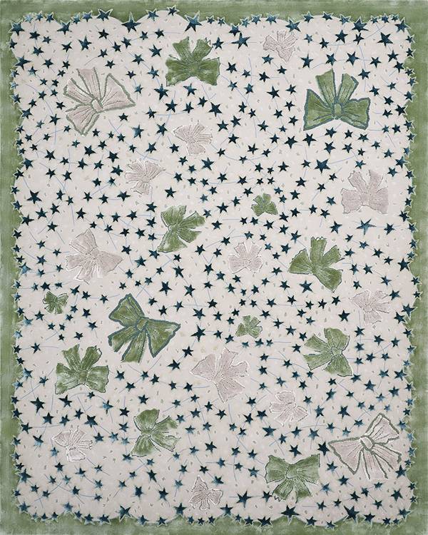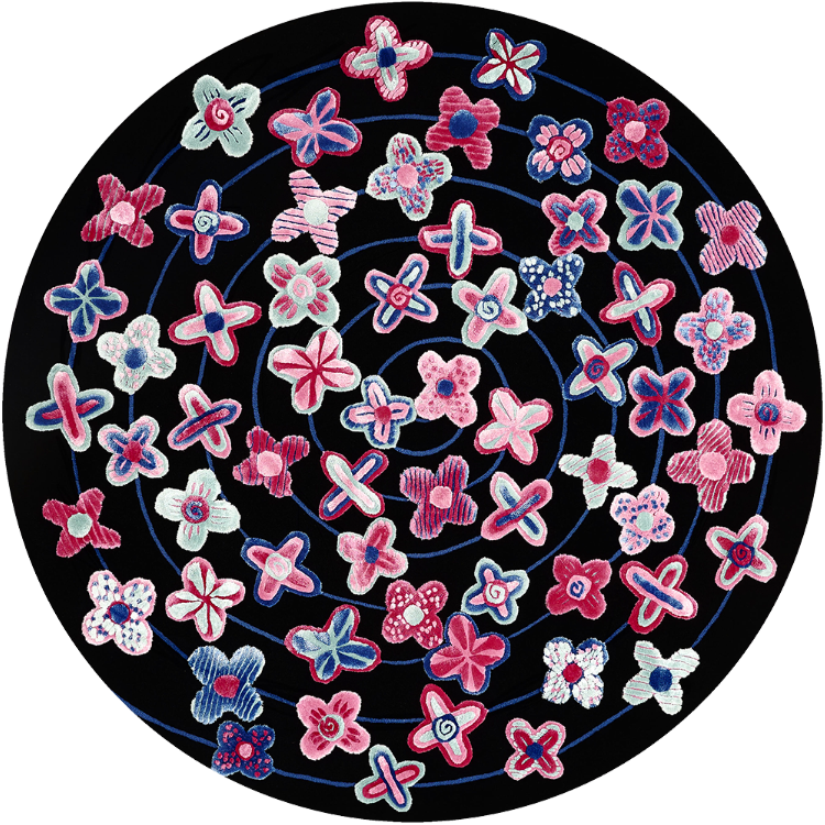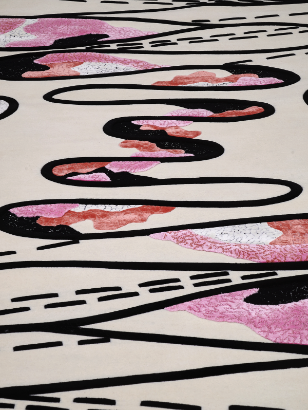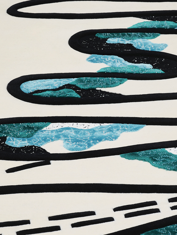 桑德拉女爵热爱自然,并有冥想的习惯。她尤喜欢坐看浮云游动,观察云朵流动的状态。此次和FULI的合作,让桑德拉女爵得以将自己多年来对云朵的热爱注入毯织设计中,她⽤寥寥数笔抽象描绘出云朵图案,构成弯曲环绕的⼩径,寓意将⼈们带往幸福的远⽅。