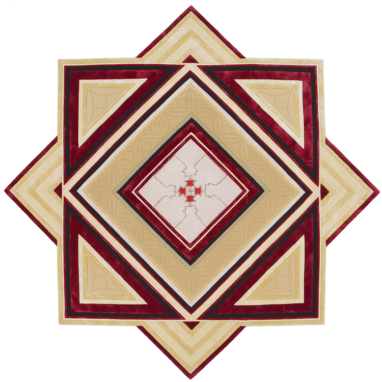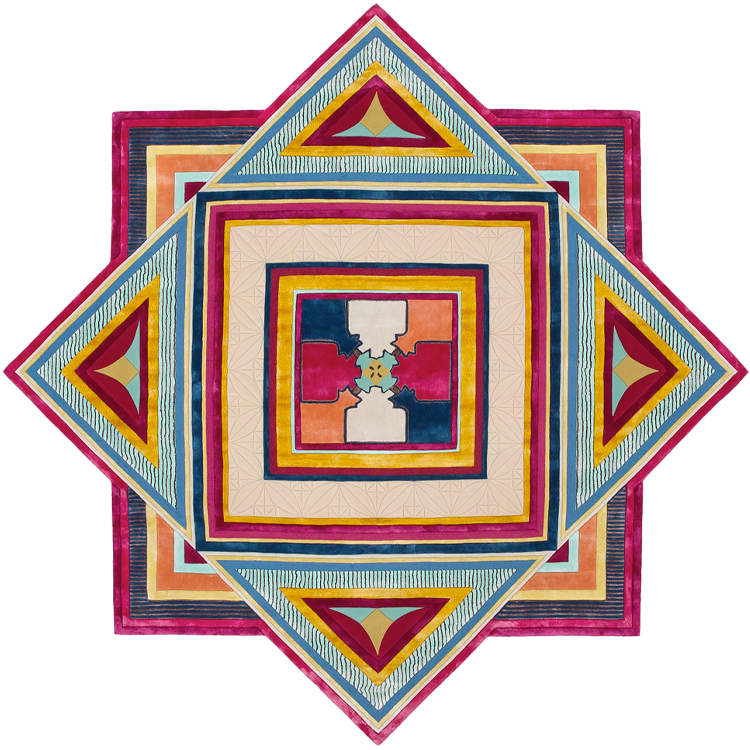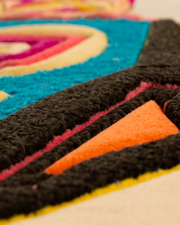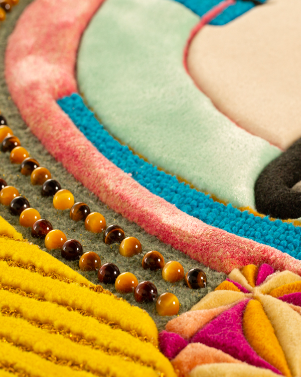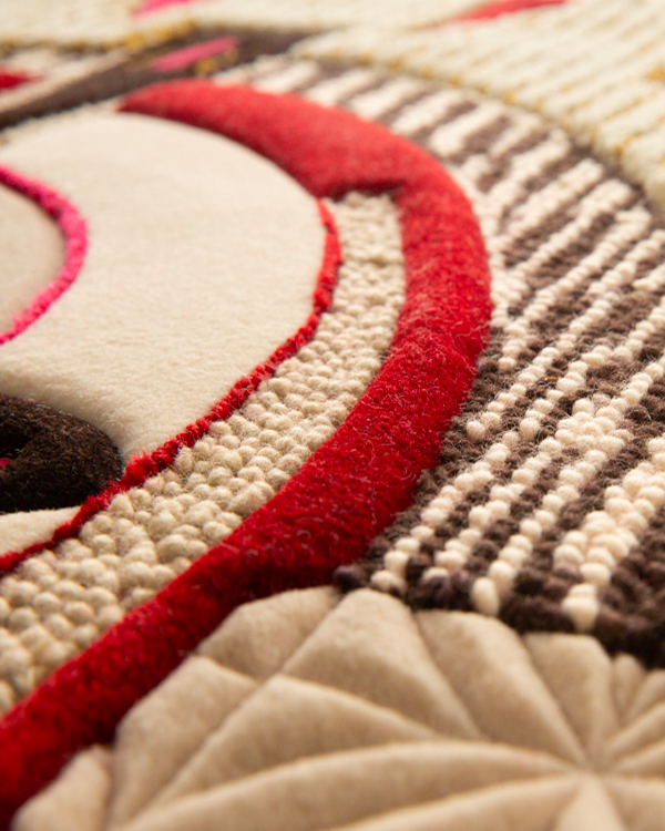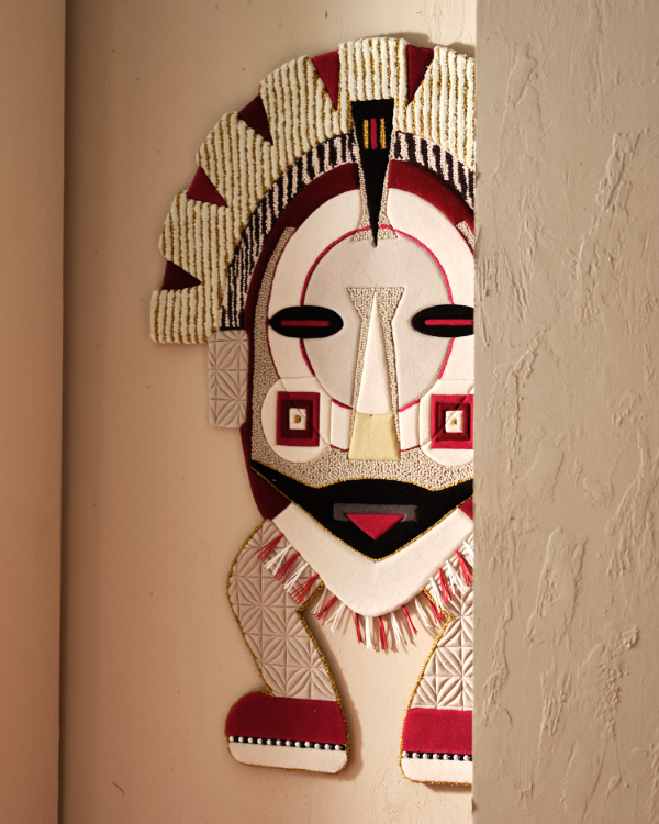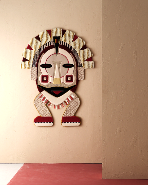 基诺宫殿客厅有⼀副装饰⾯具,有着浓厚的⾮洲部落⽓息。装饰性⾯具的⾊彩丰富且浓郁,同时昭示着万物有灵的仪式⽂化。FULI在这⼀张挂毯的呈现上也下⾜了功夫,看似简单的⾊块却蕴藏了很多雕刻细节。