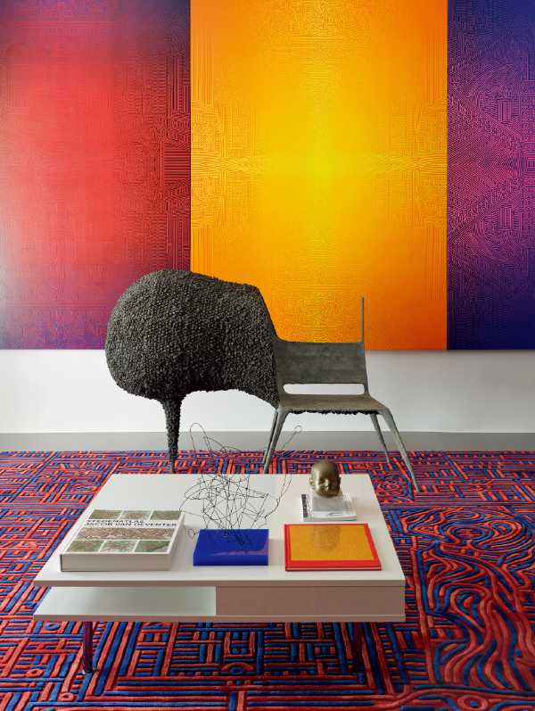 受到他自身平面设计的背景和他之前设计工作的影响,艺术家陆新建把他对线条、形状与色彩中独到的见解带到了他的艺术创作之中。当他将其的创作重心转入纯艺术领域时,自然而然地这些元素依旧在他的艺术作品中占据了重要的位置。陆新建的作品完美结合了抽象的表现方式与观念这些元素与概念。在视觉上,作品抽象的表现形式似乎近于由线、形、色随机所构成,然而在作品背后的观念上则是丰富、明确而坚实。